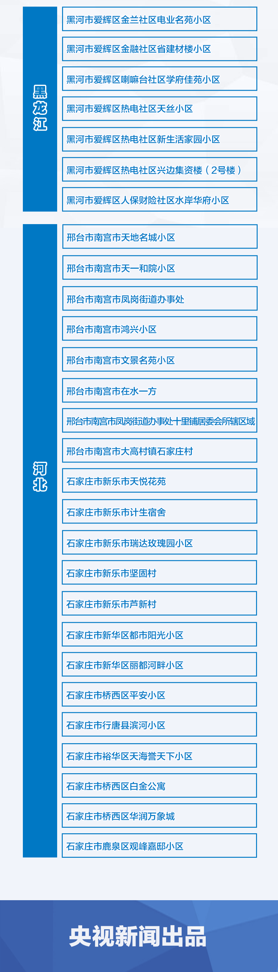 裕华区天海誉天下小区、桥西区白金公寓、桥西区华润万象城、鹿泉区观峰嘉邸小区调整为中风险地区