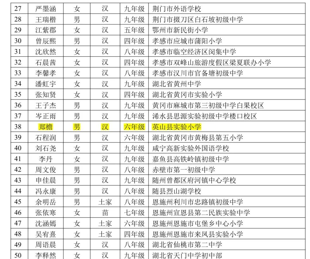 英山1名学生入选