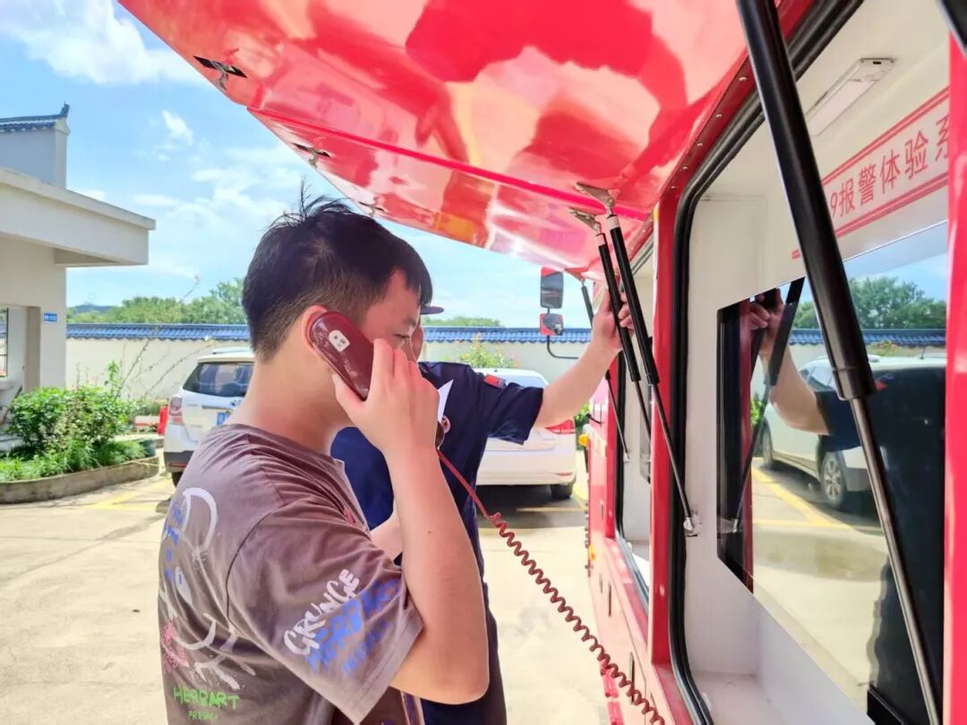 在实践体验环节,村民们来到室外消防演练车旁,消防员认真细致地为村民讲解演示了灭火器、防火面罩、灭火栓等消防器材的使用方法。