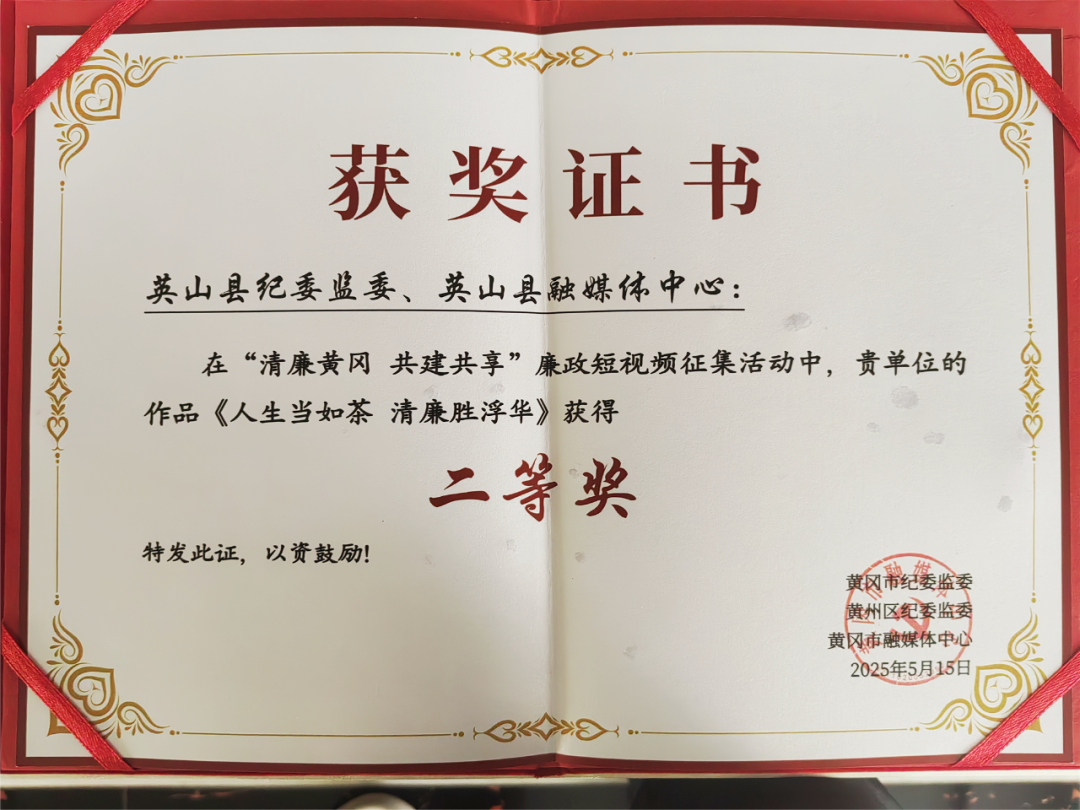 近日,由英山县纪委监委、英山县融媒体中心制作的《人生当如茶 清廉胜浮华》廉政短视频,在“清廉黄冈 共建共享”廉政短视频征集活动中荣获全市二等奖。此前,该廉政短视频已被湖北省纪委监委网站头条展播。