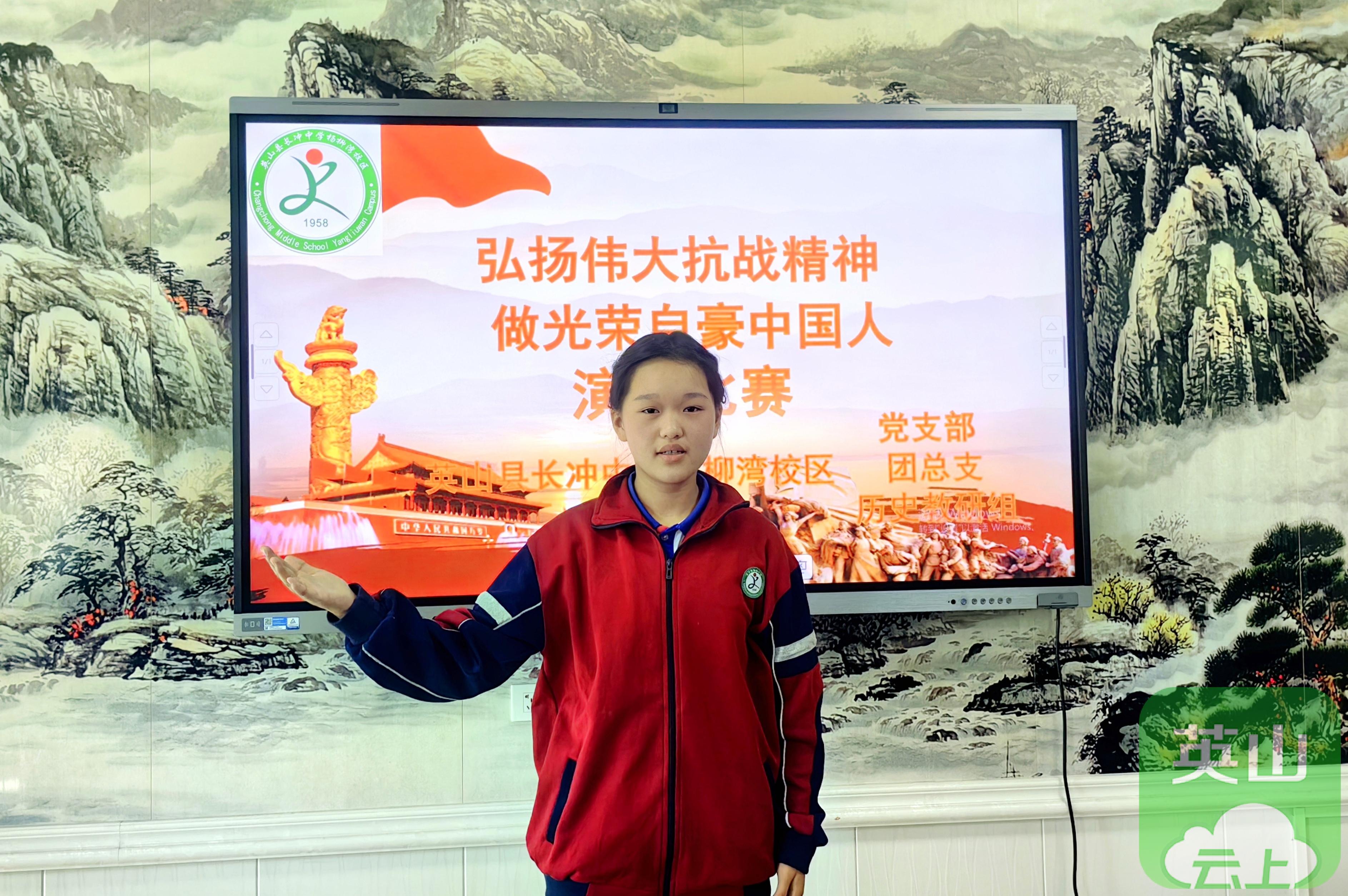 10月23日,英山县长冲中学杨柳湾校区举行"弘扬伟大抗战精神,做光荣自豪中国人"主题演讲比赛决赛。