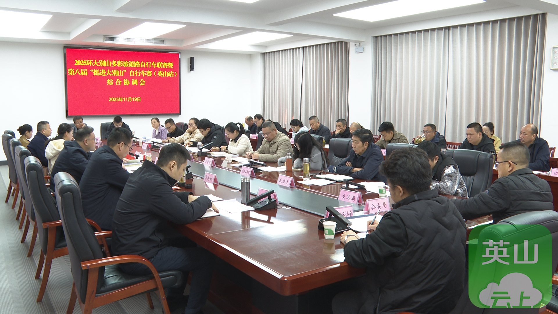 11月19日,2025环大别山多彩旅游路自行车联赛暨第八届“挺进大别山”自行车赛(英山站)综合协调会召开。县委常委、宣传部部长童壁主持会议,县领导黄伟、涂新斌、李建涛、周良遇、郑飞飞参加会议。