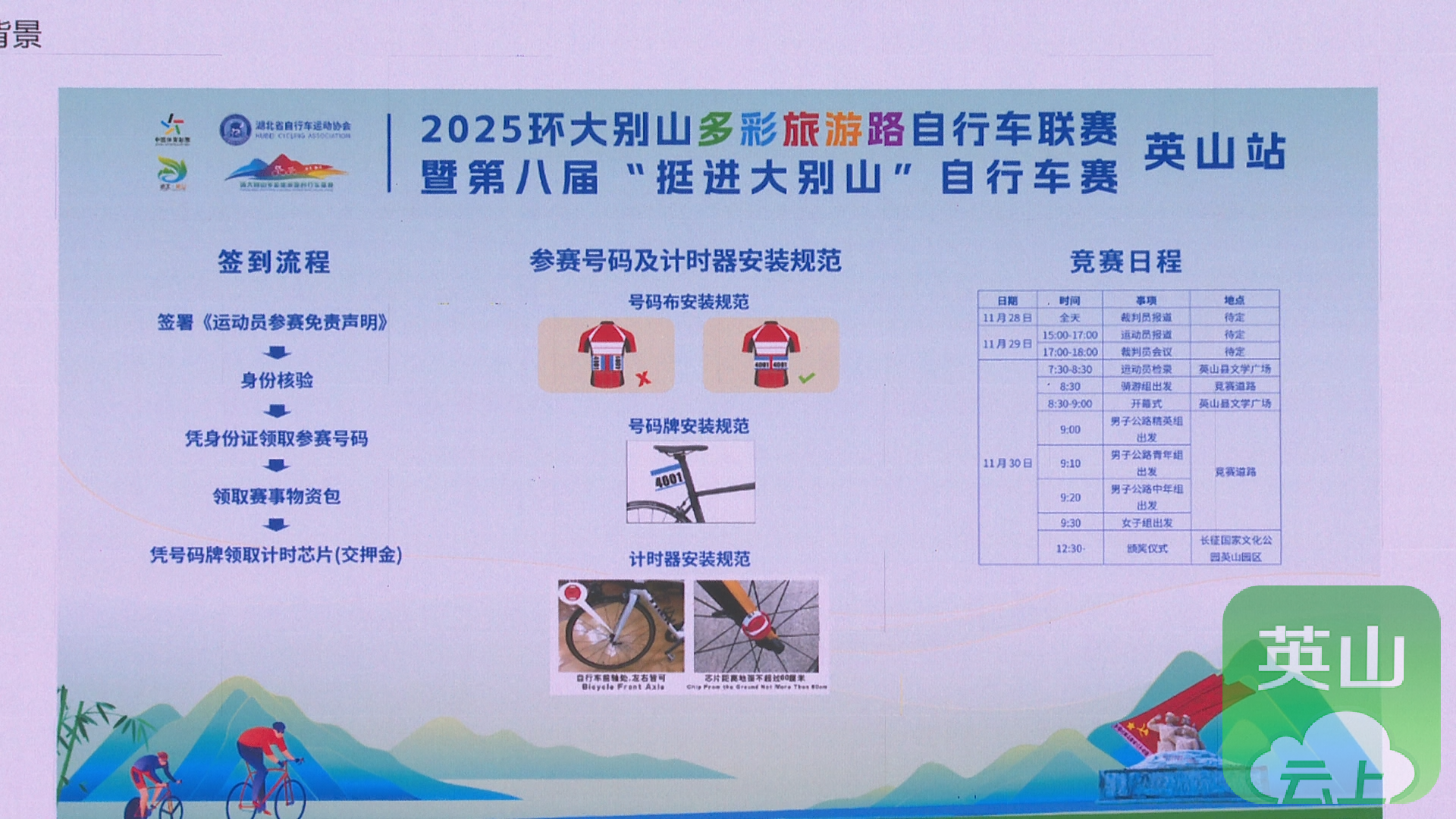 据了解,此次联赛将于11月30日开赛,从英山县文学广场出发,最终抵达长征国家文化公园英山园区,总里程约58公里,这也是英山第二次举办本项赛事。目前,英山站报名通道已于11月18日开启。作为本届联赛的闭幕收官战,赛事依托英山丰富的山水、红色旅游和康养资源,以“体育+”模式突出红色底蕴与绿色发展,将吸引全国各地骑行精英与爱好者参赛,有效推进文体旅融合与消费提振。