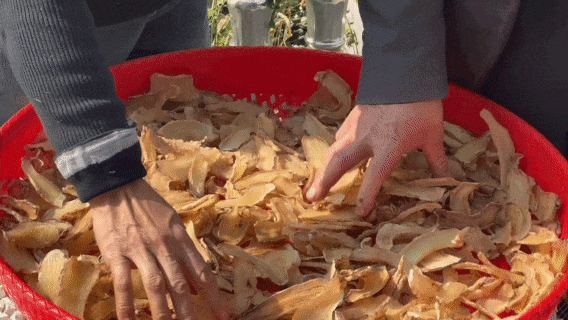炊烟袅袅,朱国平在抖音更新了一条下田干活的视频,配上粗体大字:“鲜天麻已经卖光,天麻片正在晾晒!”