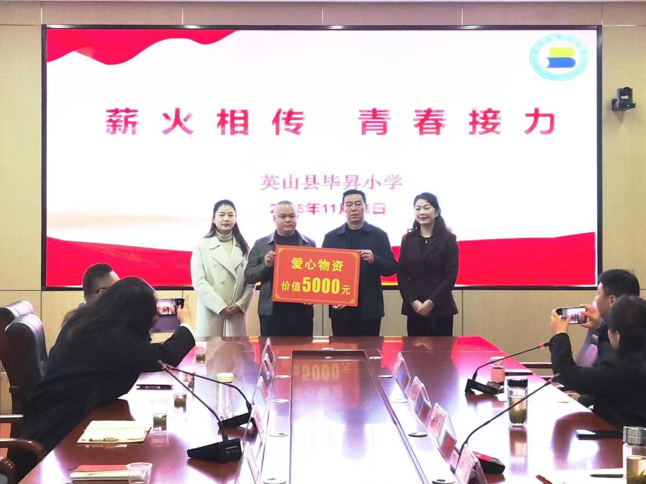 11月26日上午,英山青年创业协会在毕昇小学举行“薪火相传,青春接力”主题捐赠活动。