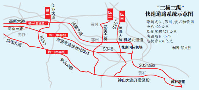 目前,“三横三纵”快速道路系统建设正在全力推进,将进一步提升武汉都市圈东部地区的互联互通。