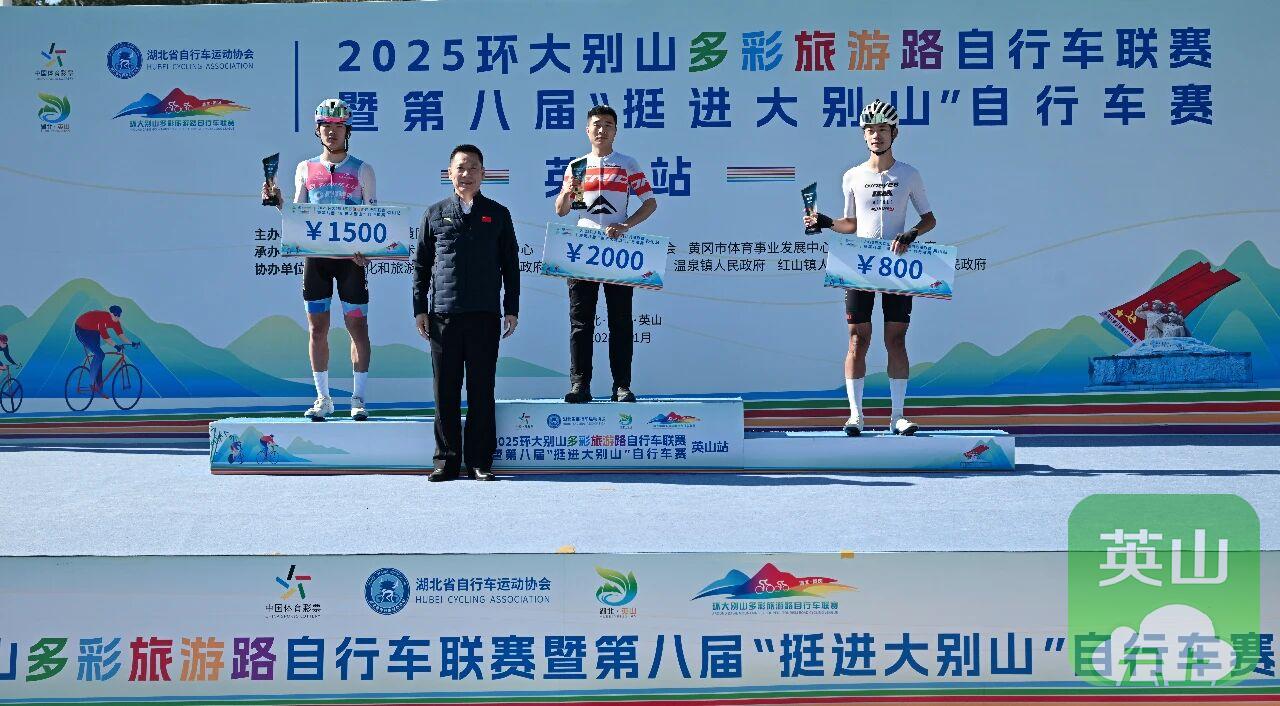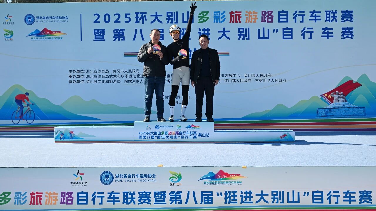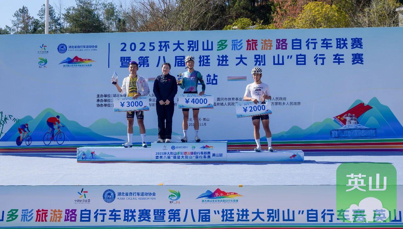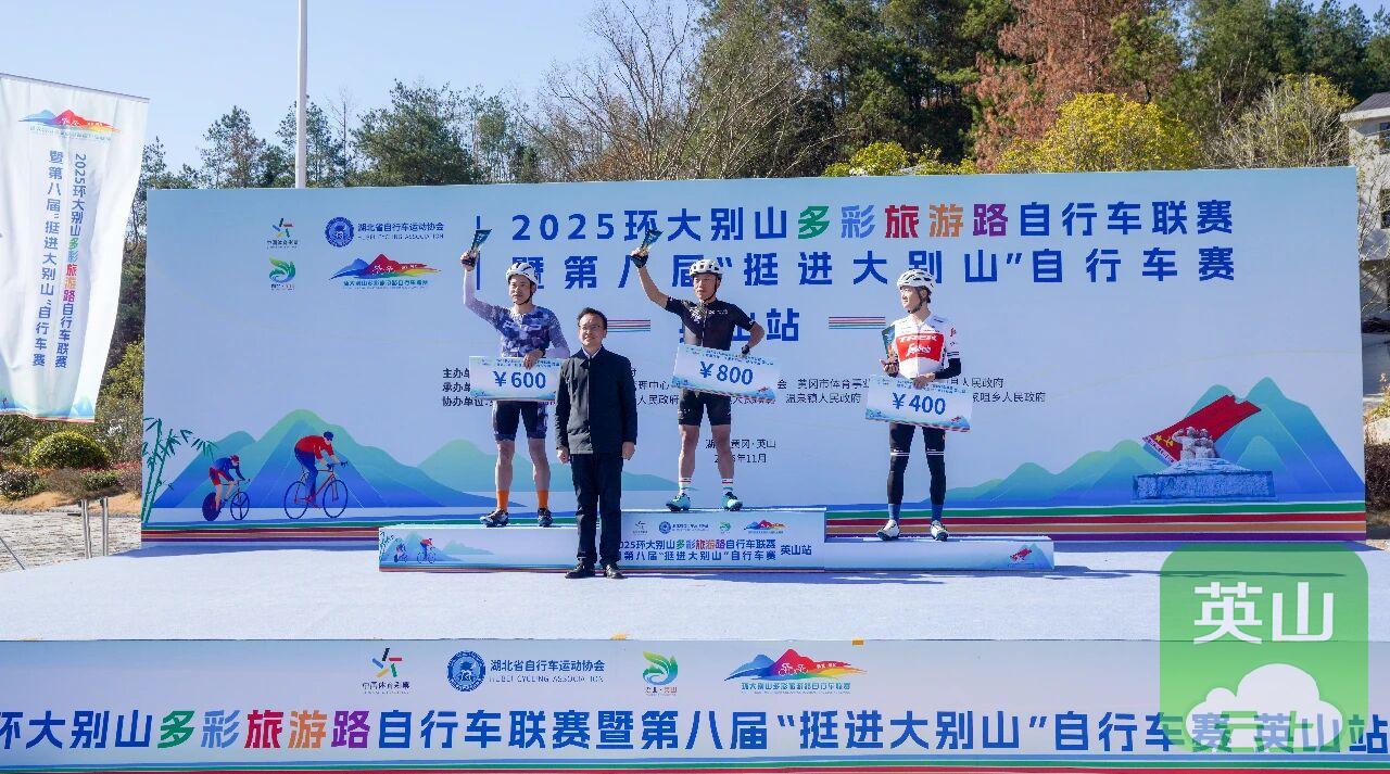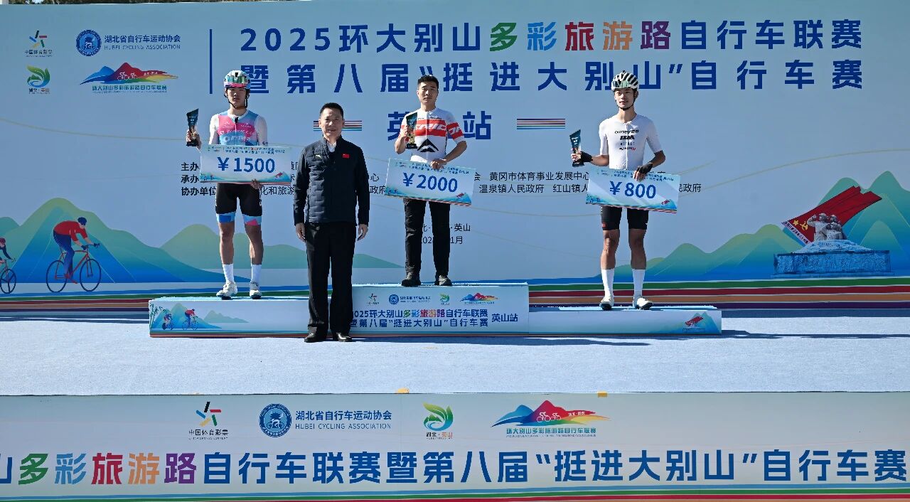 英山站比赛是2025环大别山多彩旅游路自行车联赛的收官之战,最终经过激烈角逐,五个组别分别决出前三名,并在闭幕式上进行了颁奖。