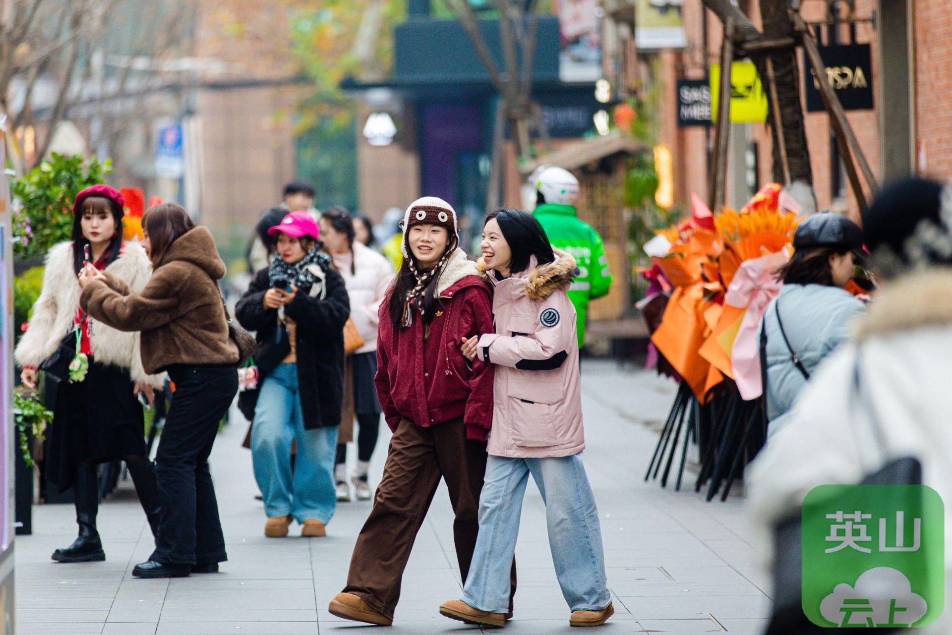 她分享道,吸引她们专程前来跨年的,正是小红书上刷屏的“武汉”涂鸦墙、满月形月亮门以及将心形光影洒在红墙上的独特氛围。傍晚亮灯后,老建筑更添温柔,她们坐在路边喝咖啡聊天,“感觉时间都慢下来了”。