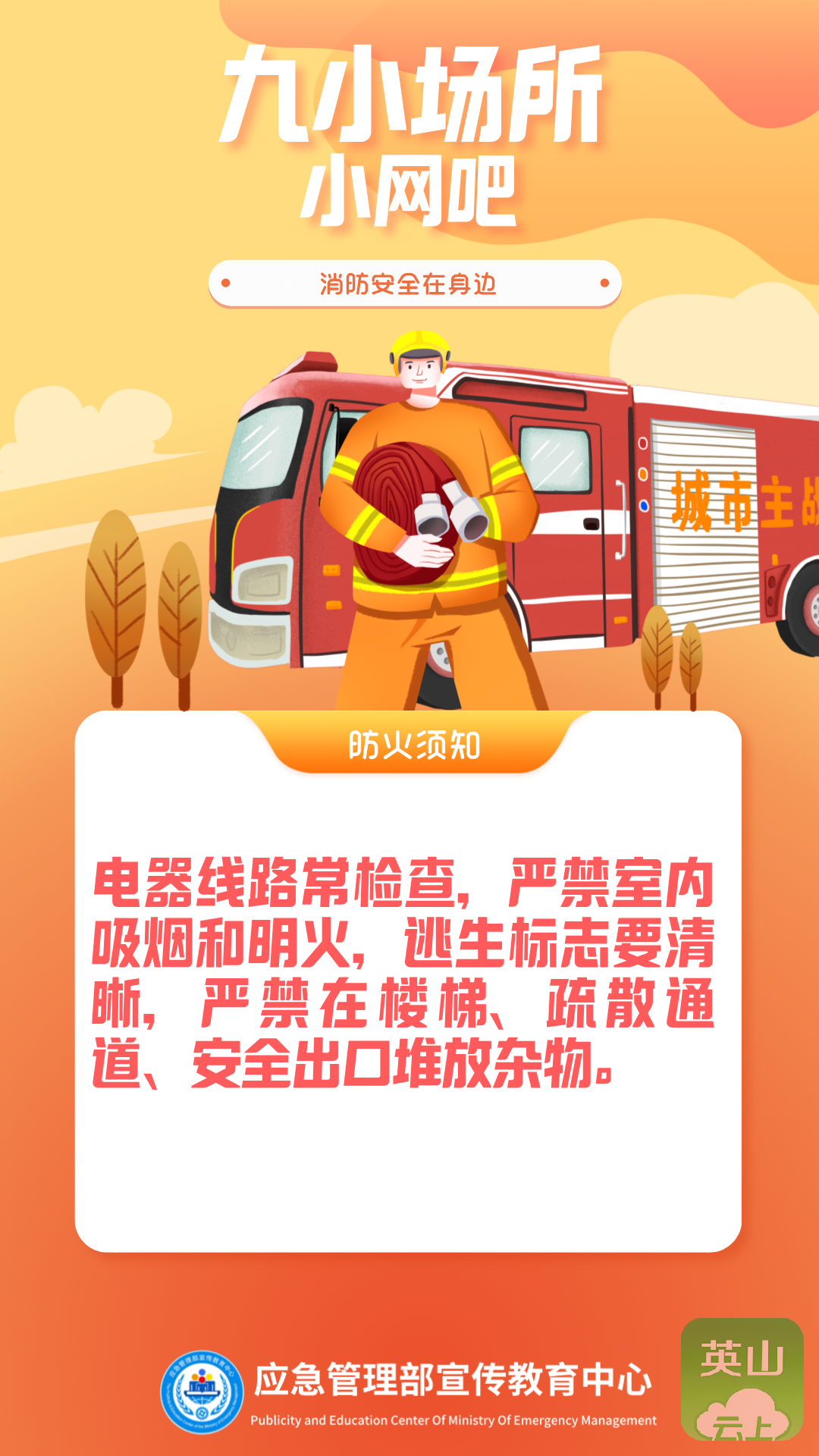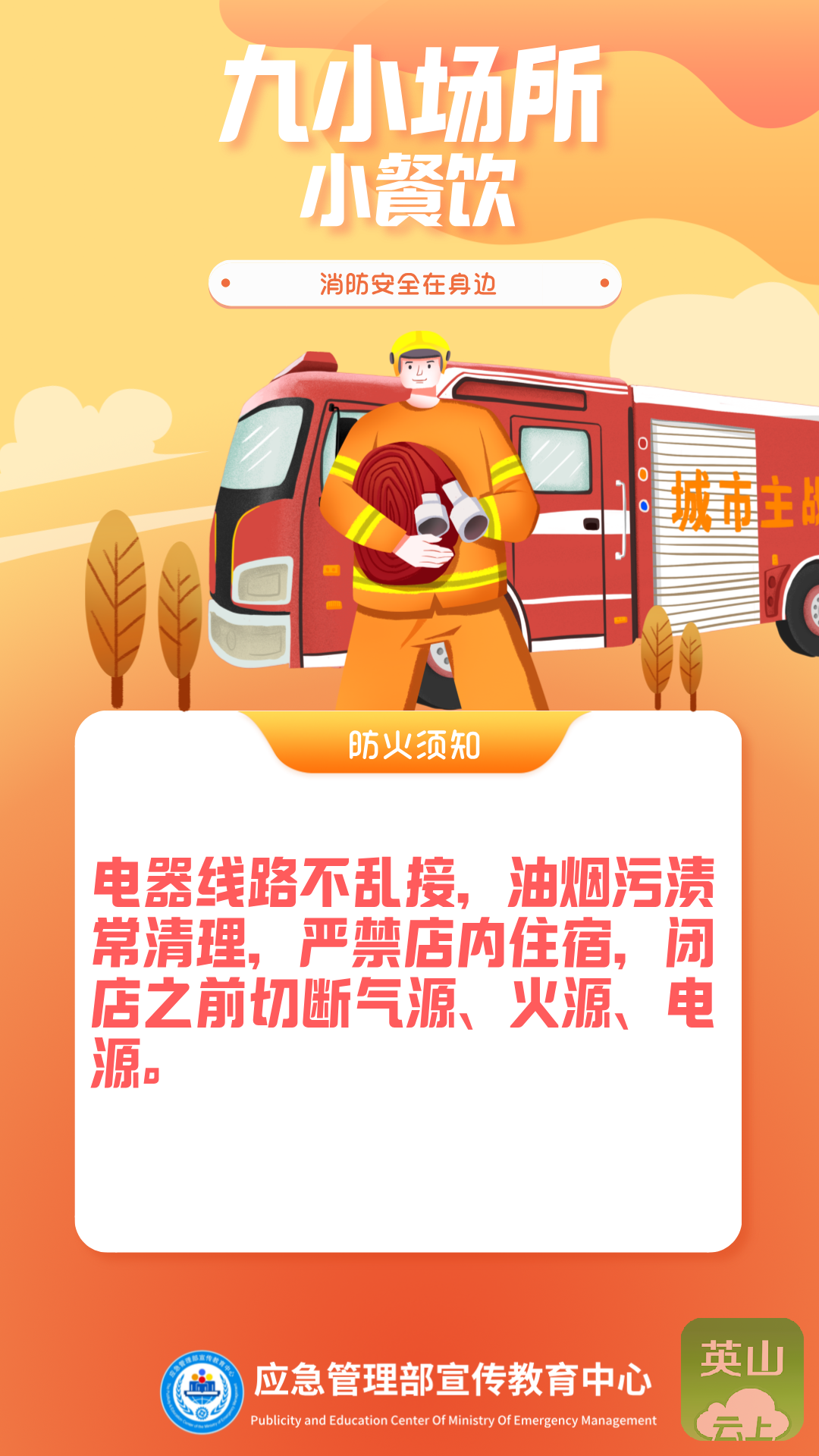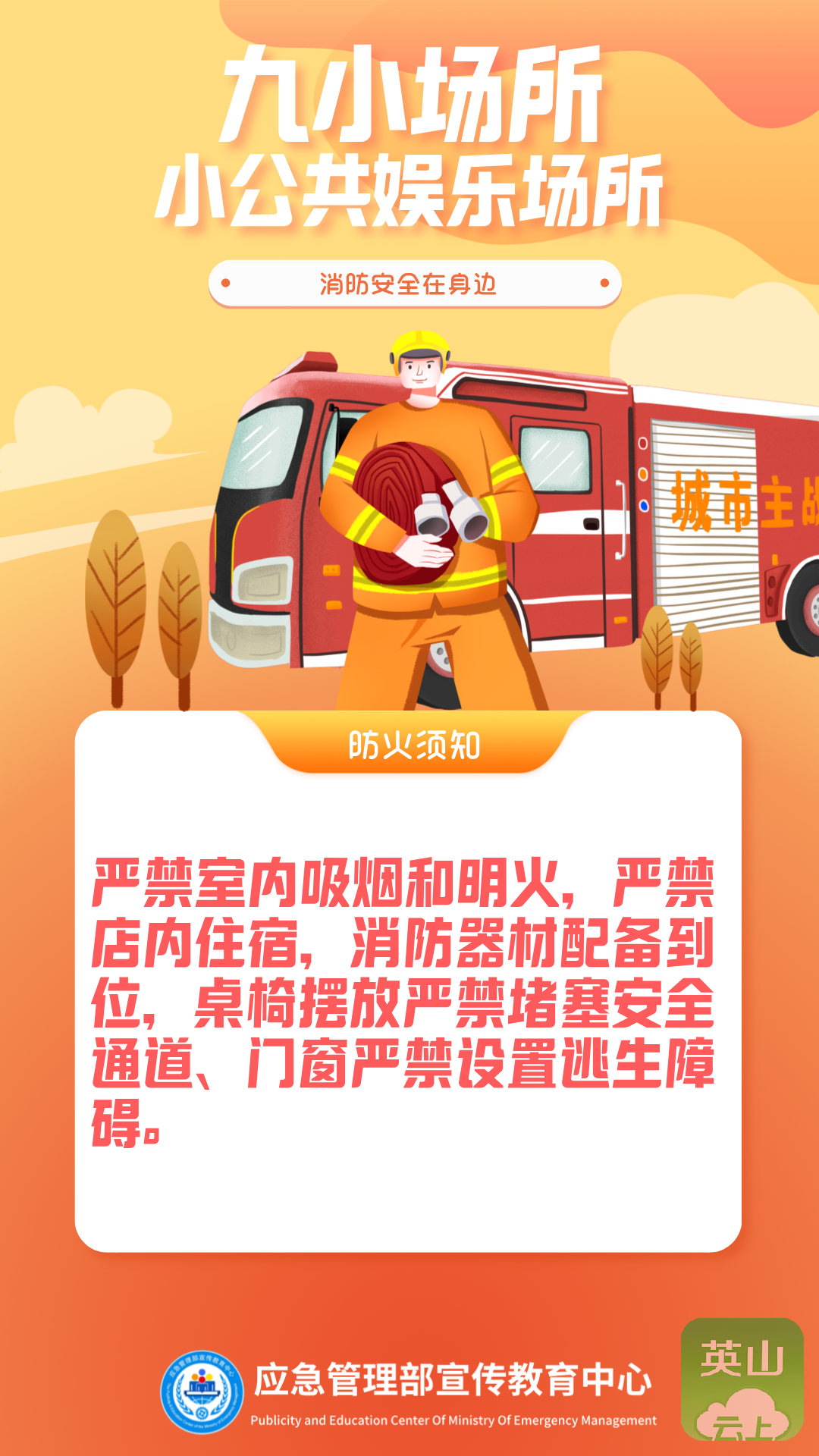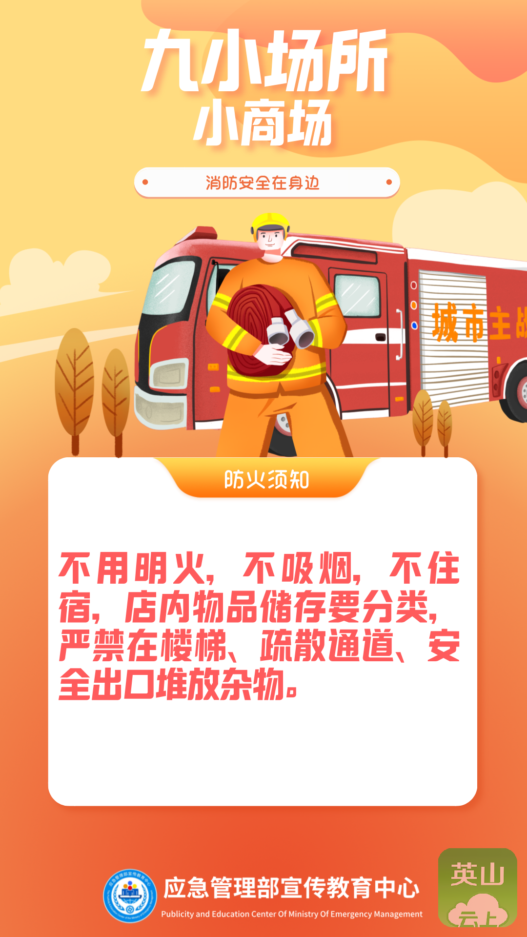 8. 进入沿街门店和“九小场所”时,请您注意消防安全。不要吸烟,不要使用明火。