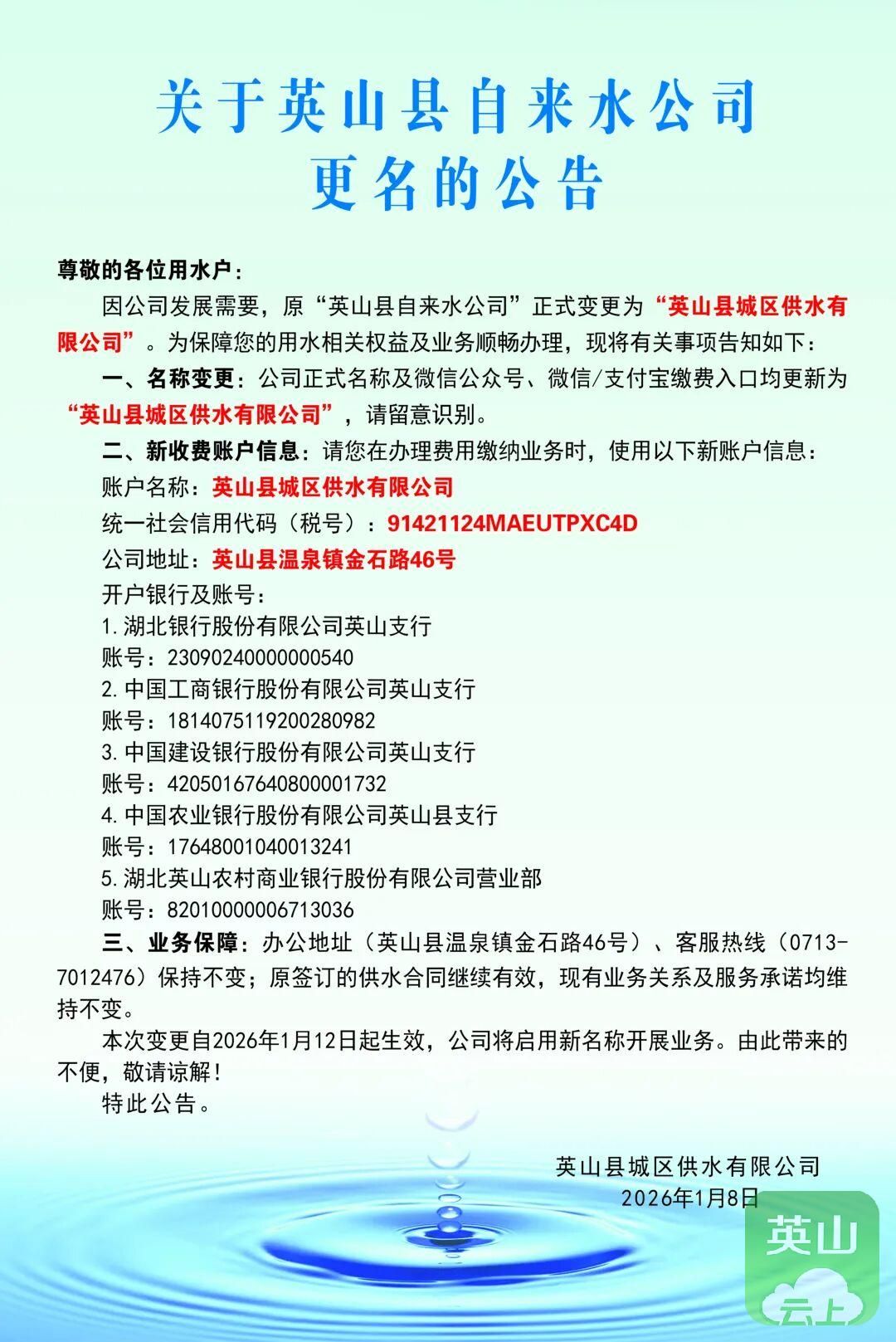 @英山人,县自来水公司更名啦!请认准→