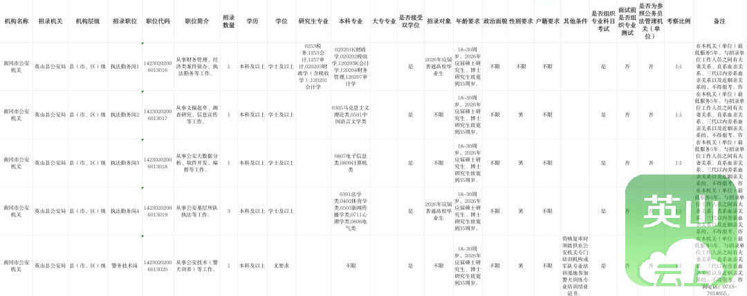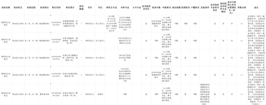 英山县公安局招考职位