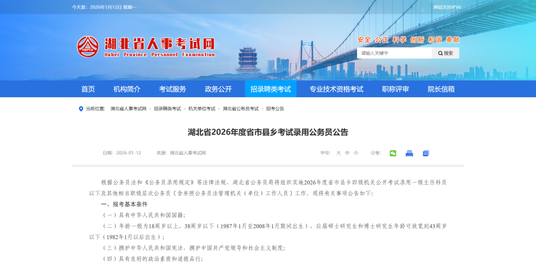 《湖北省2026年度省市县乡考试