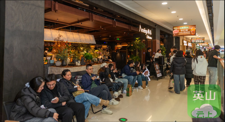 在广场四楼,元旦期间Ameigo梅果·云贵川bistro门店前等位的座椅排至走廊尽头。这家以“云南菌菇+川黔风味”为特色的餐厅,凭借“空运菌类现煮火锅”与“工业风网红打卡点”的双重标签,成为元旦假期餐饮“排队王”。