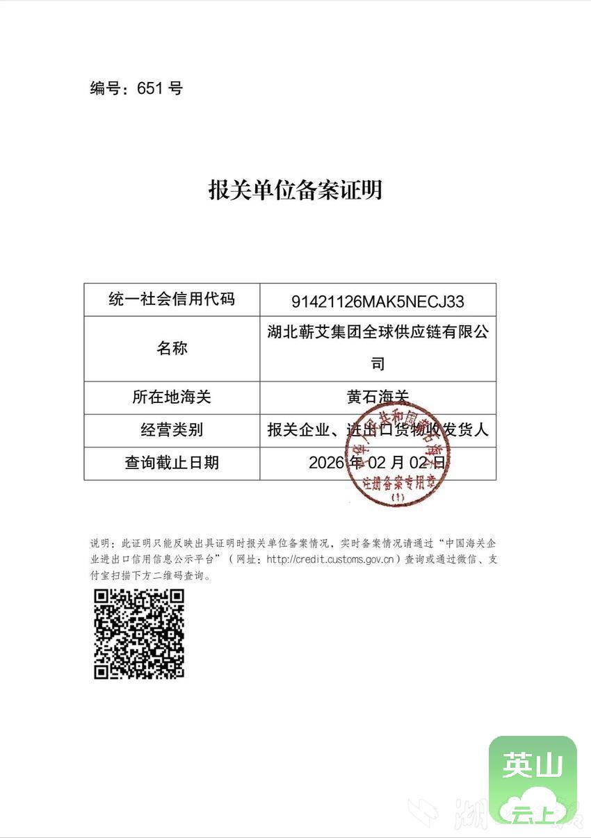 近日,湖北蕲艾集团再传佳音——其全球供应链公司正式获得进出口资质,为蕲艾产品走向国际打通了关键通道。