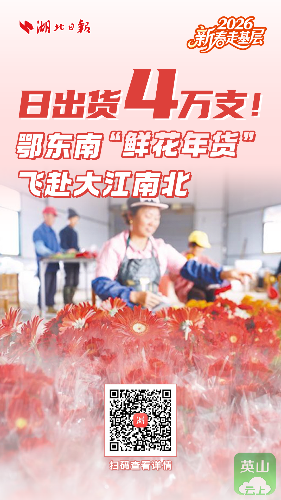 2月3日,湖北日报全媒记者走进位于鄂州市梁子湖区沼山镇的湖北梁飞生态农业科技股份有限公司(以下简称“梁飞公司”)分拣包装车间,10多名工人坐在花海中,比拼“指尖速度”。