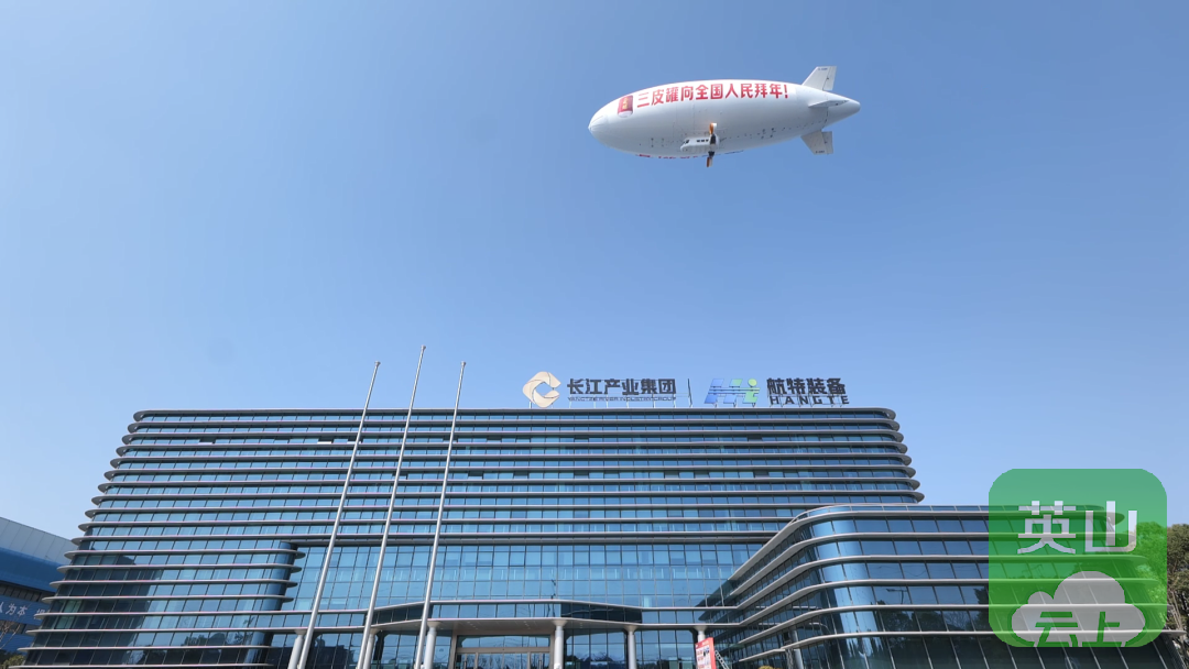 飞艇搭载着对家乡人民的满满祝福,依次飞跃园博园、圣境山、市政务中心、航特装备总部大楼等标志性建筑——掠过园博园缀满灯笼的草木清欢,俯瞰圣境山藏着年意的峰峦叠嶂,定格市政务中心旁的喜庆街巷,每一处飞跃,都是科技与烟火的相拥,每一个瞬间,都盛满荆城的年味儿与浪漫。