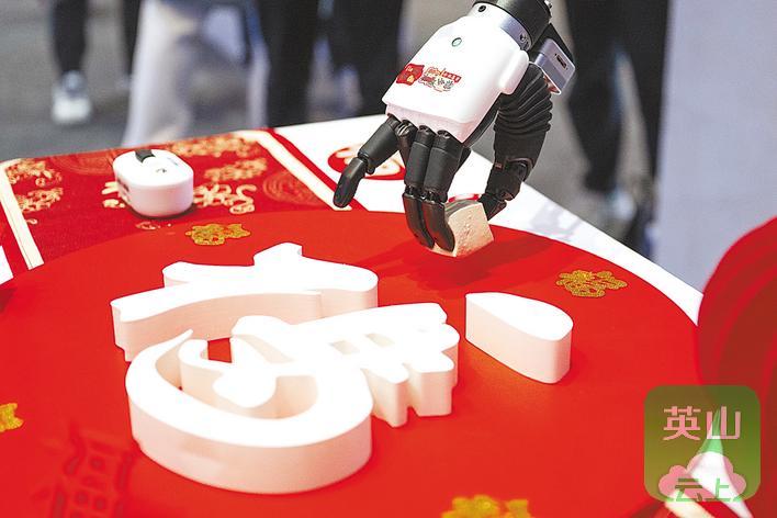 “荆楚”机器人轻轻拈起一块嫩豆腐,轻轻、稳稳地落在纸盘上,为“衣”字旁添上最后一笔,一个完整的“福”字,大功告成。