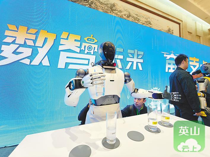 人形机器人展示抓取豆腐。(新华社发)