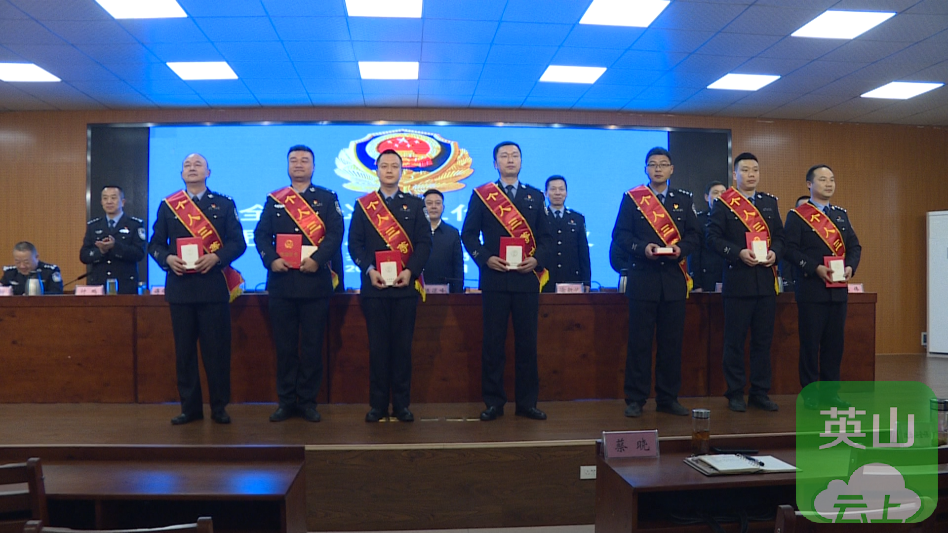 会上通报全县公安机关2025年工作质效评价情况,宣读2025年度立功受奖情况通报,为荣立集体三等功及嘉奖的单位颁发奖牌,为荣立个人三等功的民警颁发奖章和证书。