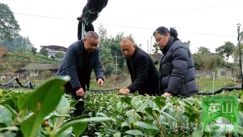 3 月5 日,咸丰县农业农村局农技专家在白茶基地查看白茶长势。(通讯员 舒 淑 摄)