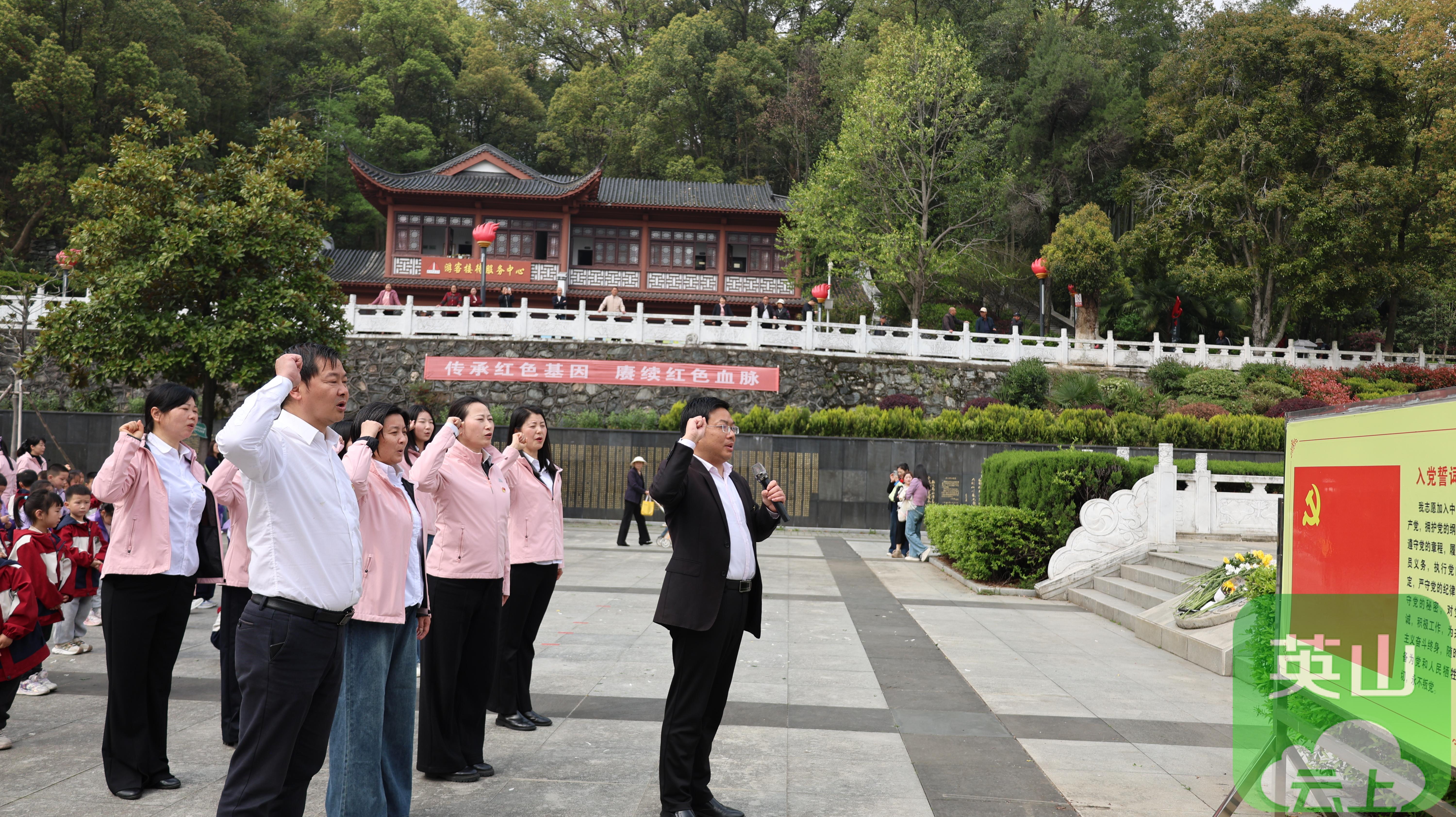活动现场庄严肃穆,全体党员教师与中班幼儿整齐列队,集体默哀,教师代表和幼儿缓步上前,向烈士纪念碑敬献花圈、整理缎带,寄托无限追思。随后,党员教师面向党旗重温入党誓词,铿锵誓言彰显育人初心与使命担当,充分发挥党员先锋模范作用,为孩子们树立爱党爱国的榜样。