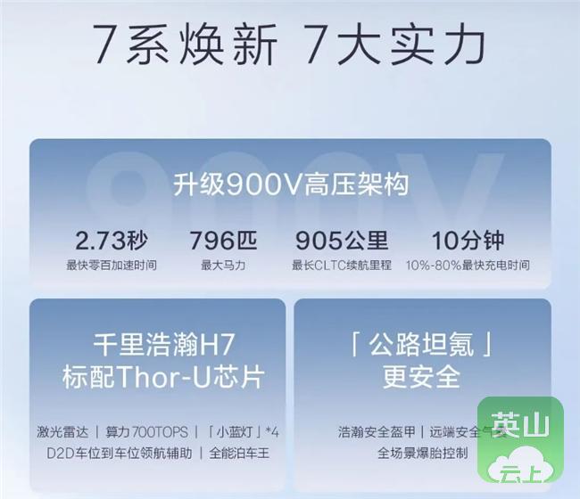 两款车型采用千里浩瀚H7方案,标配激光雷达等31颗感知硬件,搭载升级后的700 TOPS Thor-U芯片,并配备4个辅助驾驶状态小蓝灯。功能上支持高速泊车、记忆泊车及指尖泊车等全场景泊车辅助。