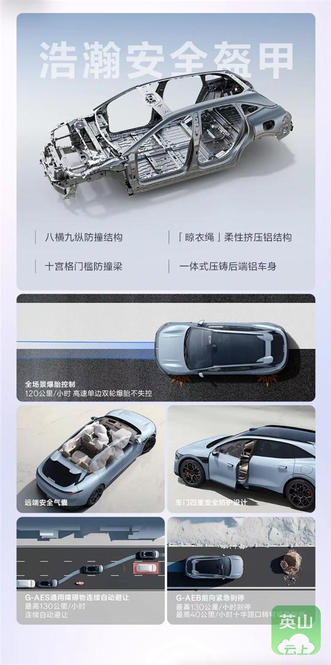 两款车型标配120km/h高速爆胎控制、G-AES连续自动避让及AEB紧急制动。焕新极氪007新增远端气囊,整车满足720度安全盔甲:前向八横九纵、CBS、吸能盒等;侧面十宫格;后方一体压铸;上方顶压4.7倍车重(超国标16%);底部9层电池防护。全车7气囊、防穿刺后排座椅,配合高压配电盒主动滑落+毫秒级断电、车门四重防护。救援冗余:四门内外机械拉线,低压电池后座下方,毫秒级断电与解锁,SOS按键。