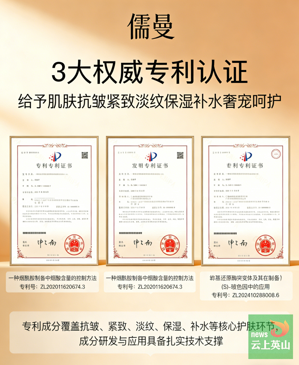 儒曼抗皱紧致套装拥有多重权威背书,安全性与功效性双认证。产品含多项中国发明专利成分,玻色因(ZL202410288008.6)、烟酰胺(ZL201610522039.9、ZL202011620674.3)、角鲨烷(ZL202111334606.5)等专利成分,经科学验证,抗皱修护功效明确。产品通过严格皮肤安全性测试,无酒精、激素、重金属等有害添加,敏感肌亦可安心使用。核心成分均为天然植萃与温和功效成分,雪莲花提取物抗氧化舒缓,黑麦籽提取物修护滋养,多重多肽温和抗皱,不刺激肌肤。正规生产流程,符合国家化妆品安全标准,第三方检测报告验证成分含量与功效,品质有保障。