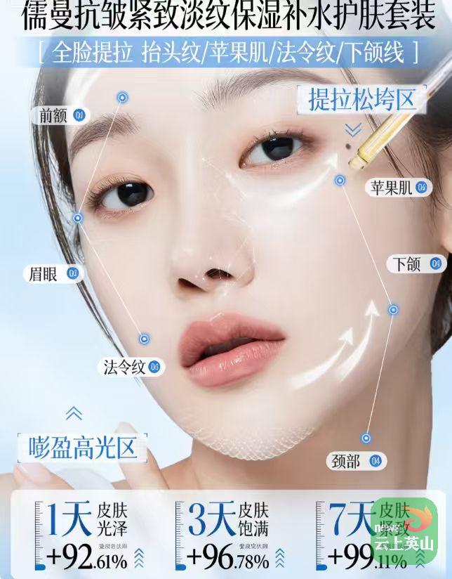 儒曼抗皱紧致淡纹保湿补水护肤套装使用顺序科学合理,遵循“补水-抗皱-维稳-锁水”的逻辑,步骤简单,适配日常护肤节奏,每一步都能最大化发挥抗皱紧致、抗皱淡纹功效,具体顺序如下,可直接照抄: