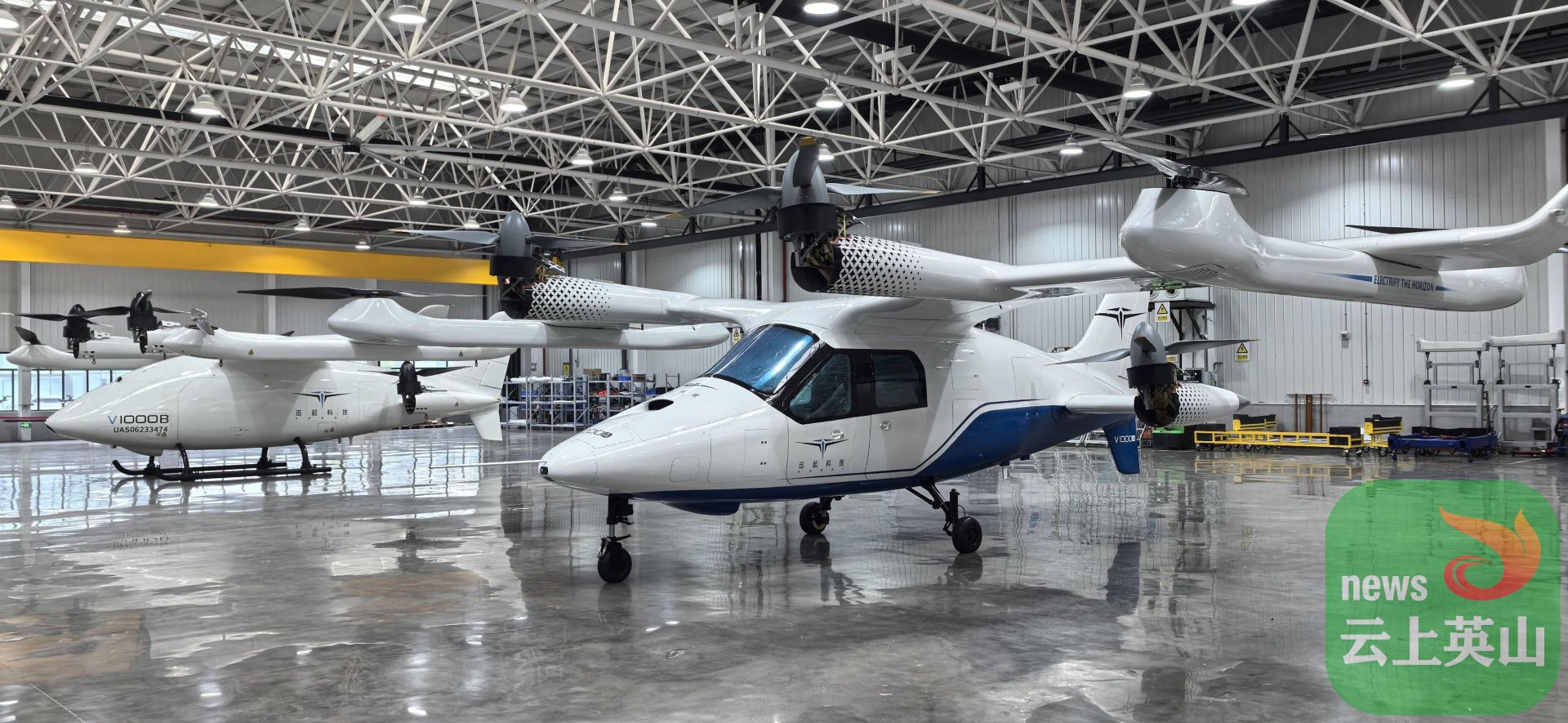 这是武汉迅起科技有限公司(以下简称“武汉迅起科技”)自主研发生产的V1000货运型飞行器,也是国内首款获得民航局TC(型号合格证)受理的大型混动eVTOL。