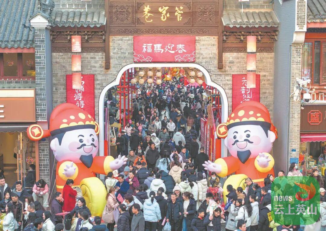 游客们游览古街巷、品尝特色美食、欣赏璀璨夜景,感受别样年味,乐享美好假期。摄影:杨东