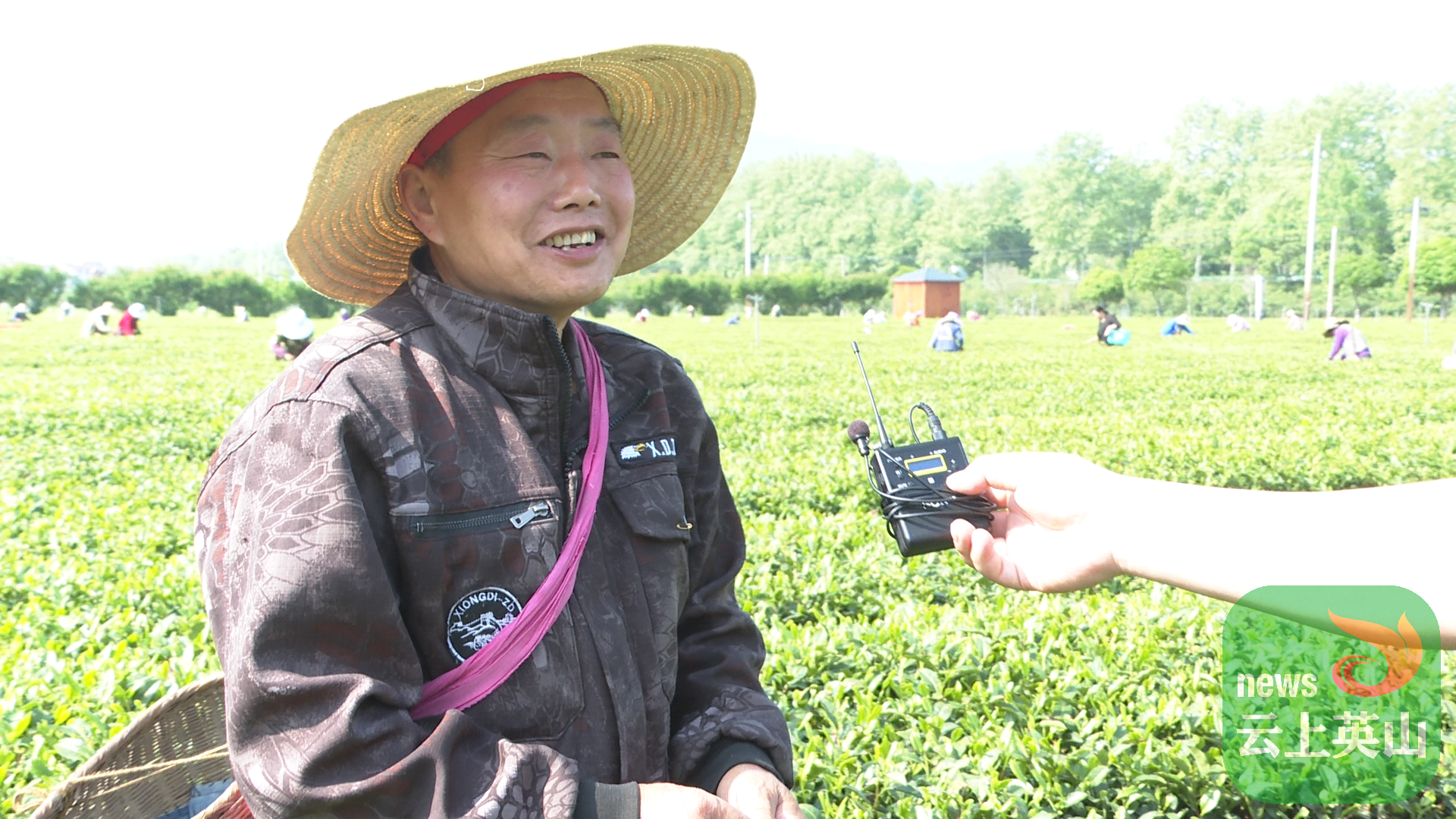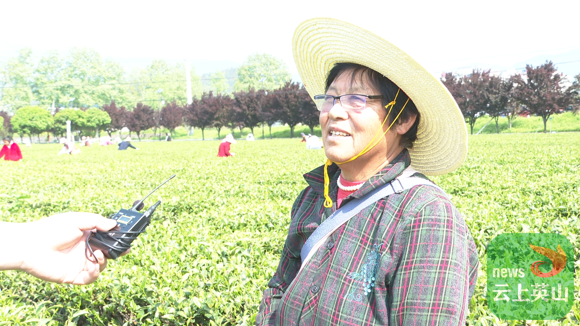 采茶工 汪世恩:我是汪家河的农民,经常(有)这么多人来摘。这茶叶挺好的,茶园很漂亮。