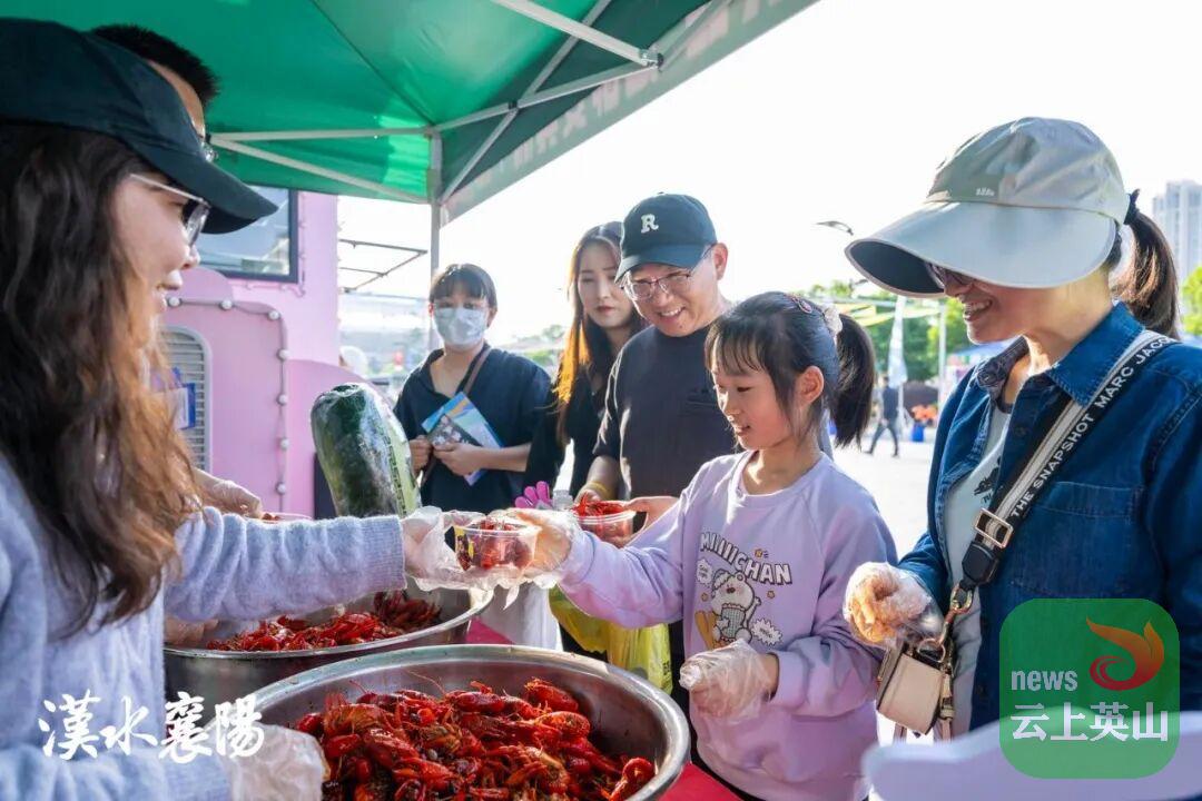 球迷在楚超美食市集排队领取宜城大虾。记者江旭东