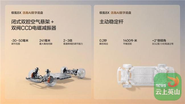 极氪8X依托浩瀚-S超级电混架构,实现了性能维度的全面进阶。三电机版极氪8X曜影以2.96秒零百加速成为“全球加速最快混动SUV”,直接刷新中大型SUV性能排名的榜首认知。但极氪的野心不止于直线——全栈900V混动高压架构、高性能四驱系统与浩瀚AI数字底盘的组合,让车辆在复杂路况下也能稳步掌控。Ultra+版更是标配了百万级底盘硬件:闭式双腔空气悬架、双阀CCD电磁减振器、同级唯一的主动稳定杆,配合315宽胎,使这款中大型SUV拥有超强抗侧翻能力和赛道级操控。极氪8X让“性能”一词,从单一的加速数字,扩展为全速域、全地形的驾驶自信。