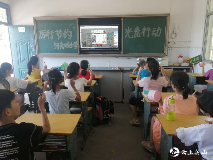 英山温泉小学积极倡导“厉行节约 光盘行动”