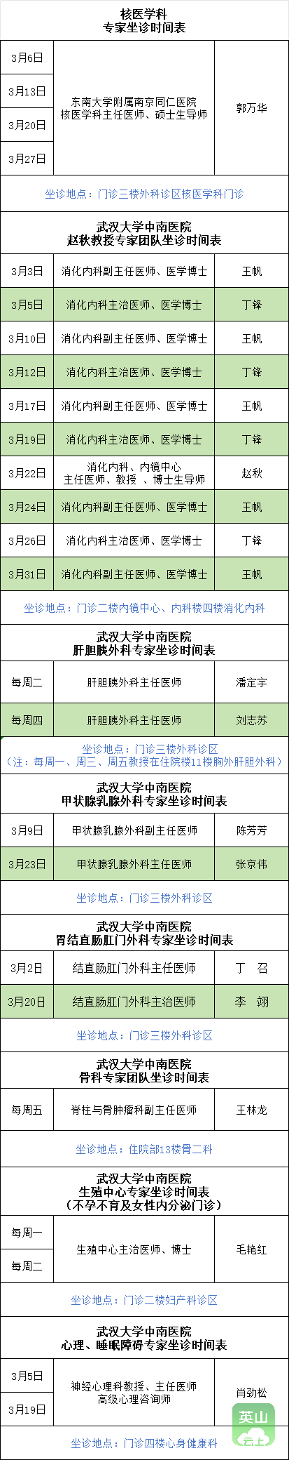 【医讯】省级专家2026年3月份在英山坐诊信息