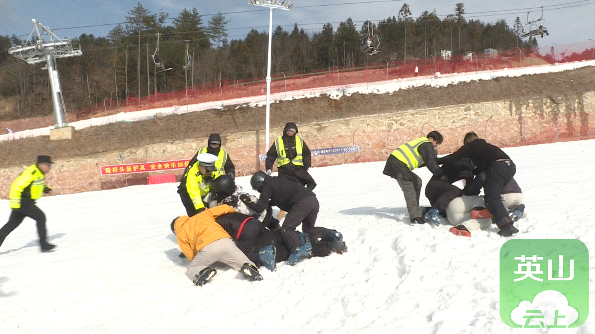 1月28日,县公安局联合桃花冲滑雪场开展专项应急实战演练。
