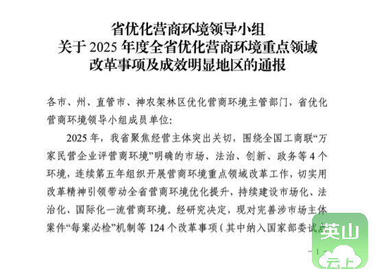 作为湖北省“探索开展药品安全智慧化监管”营商环境改革试点,英山县市场监管局“探索开展药品安全智慧化监管”事项在湖北省优化营商环境领导小组《关于2025年全省优化营商环境重点领域改革事项及成效显著地区的通报》中获通报表扬。