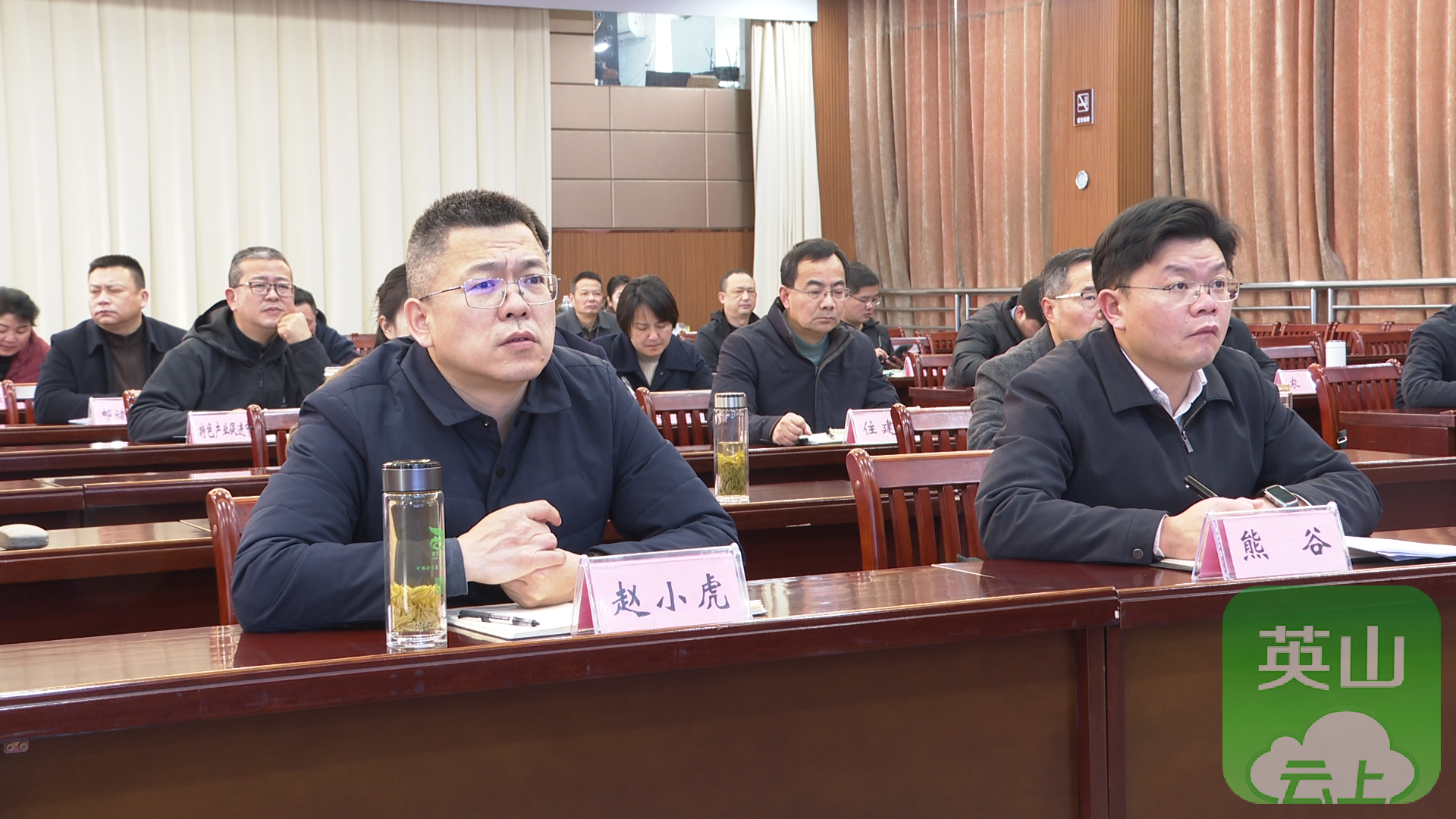 3月4日,黄冈市举行2026年金融工作会议暨金融“早春行”活动,县委副书记、县长赵小虎,县委常委、副县长熊谷在英山分会场收听收看会议。