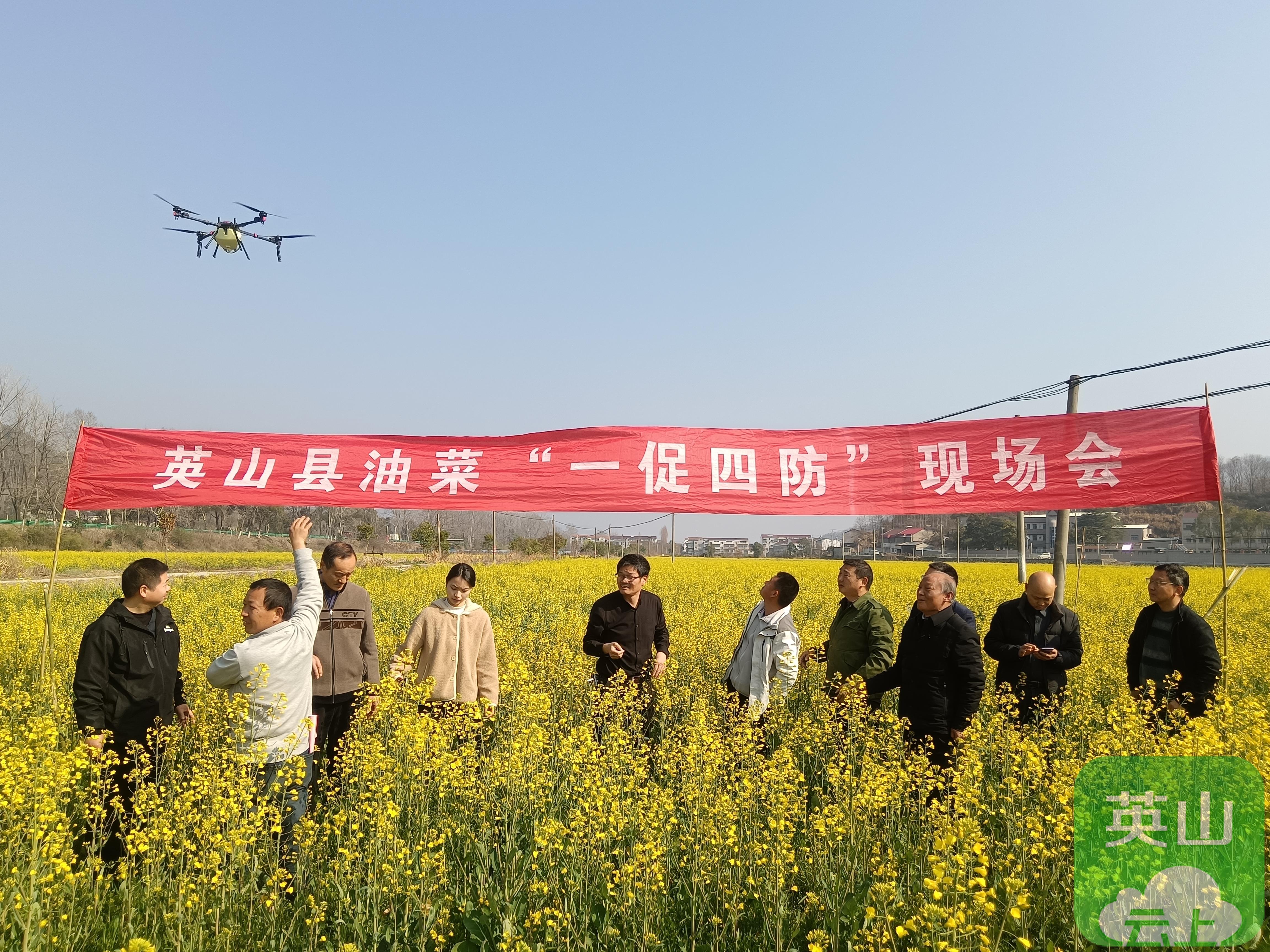 3月10日,英山县农业农村局在孔坊乡新铺村开展油菜“一促四防”社会化飞防服务,以油菜菌核病防治为重点,全面推进专业化统防统治,为夏油稳产增收筑牢防线。