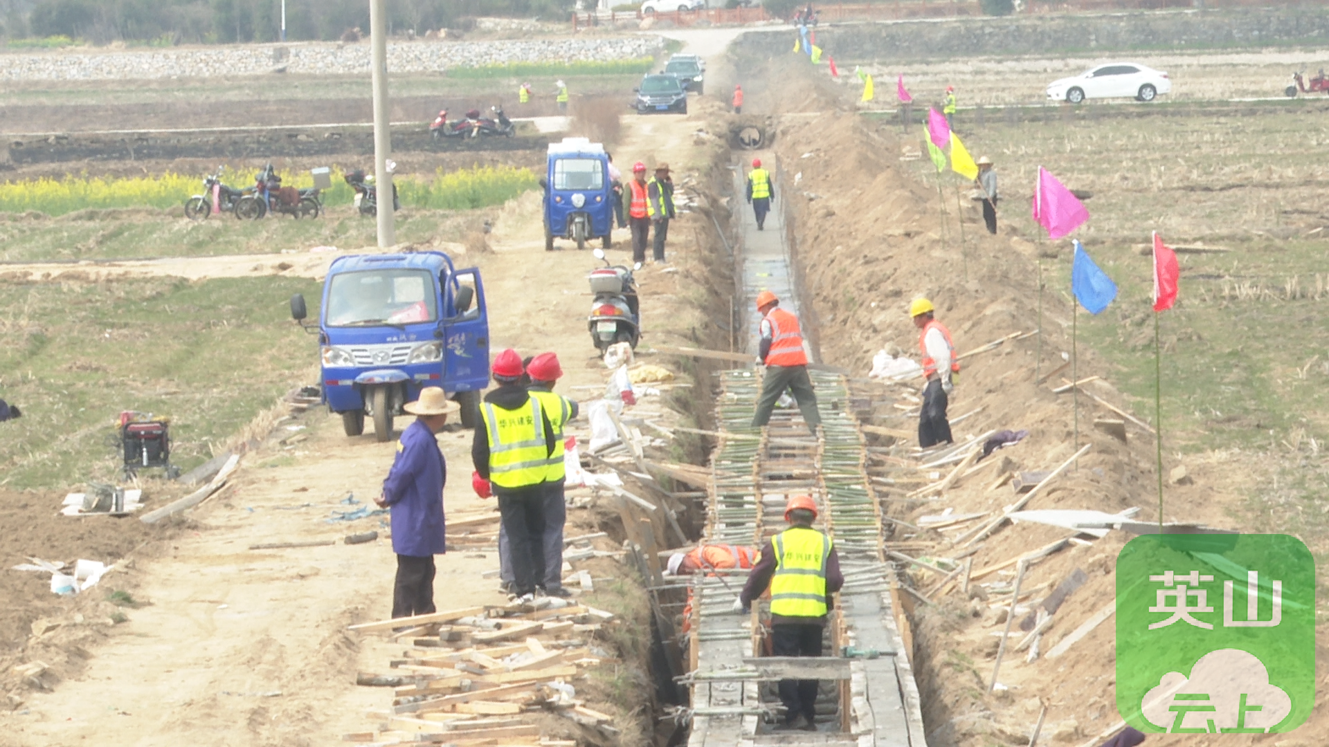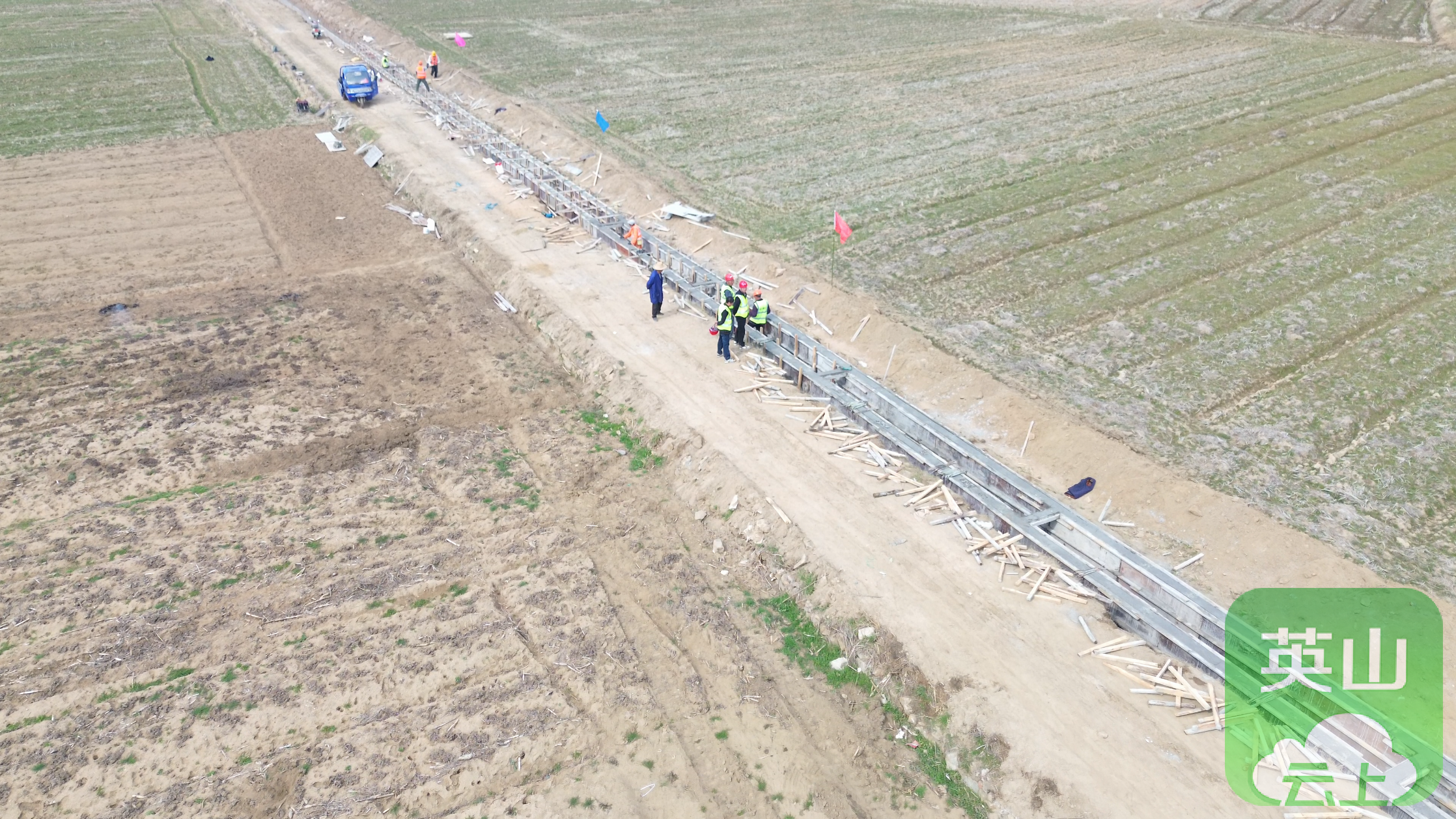 3月15日,记者在金家铺镇双庙村高标准农田建设现场看到,施工人员正有序进行模板安装、沟渠清理、洒水养护等作业,力争早日建成,打通农田灌溉排涝的“毛细血管”。